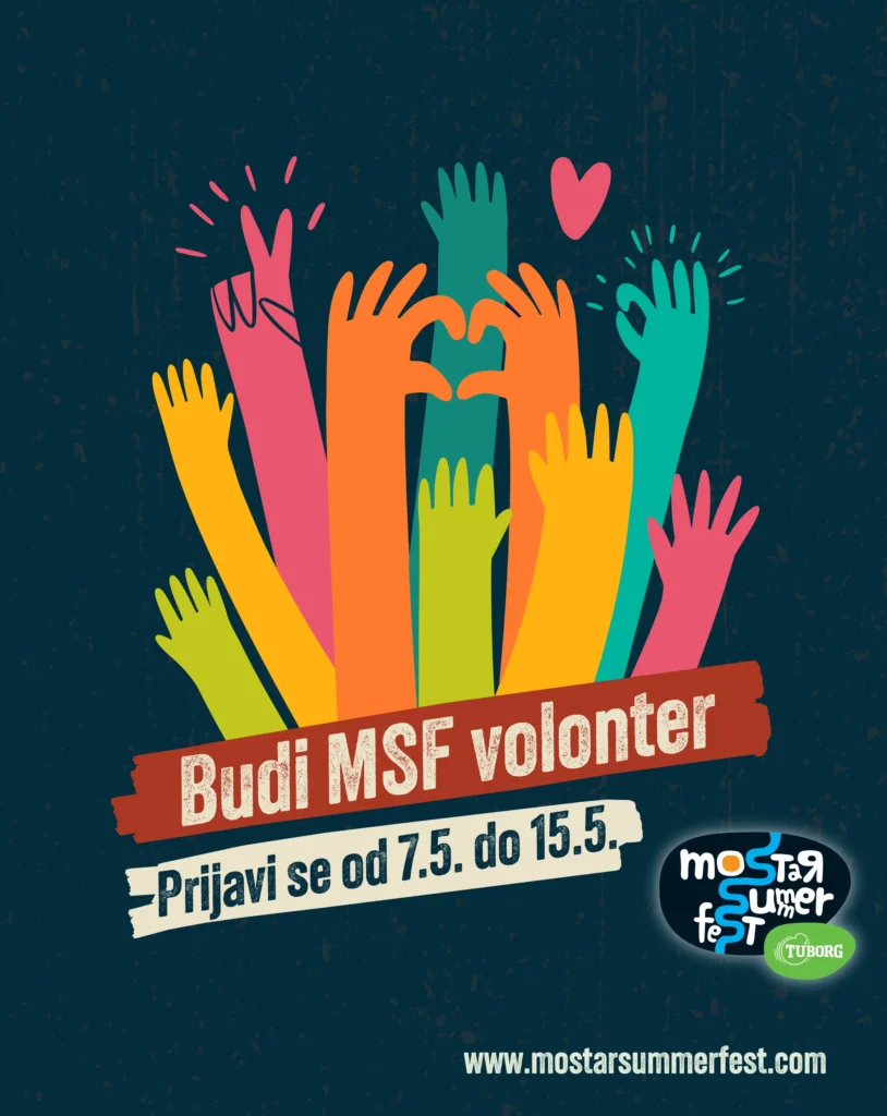 Natječaj je otvoren od 7.5.2024. do 15.5.2024. (srijeda) u ponoć. Osim festivalske ulaznice, hrane i osvježenja, volonteri će dobiti i Mostar Summer Fest službenu majicu i zahvalnicu kao uspomenu na druženje s organizacijskim timom i izvođačima. Budi dio MSF-a, budi volonter na festu i stvaraj sebi najljepše ljetne uspomene.